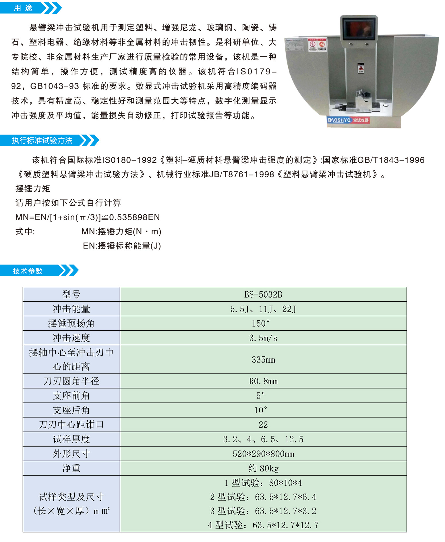 悬譬梁冲击试验机用于测定塑料、增强尼龙、玻璃钢、陶瓷、铸石、塑料电器、绝缘材料等非金属材料的冲击韧性。是科研单位、大专院校、非金属材料生产厂家进行质量检验的常用设备,该机是一种结 构 简 单 , 操 作 方 便 , 测 试 精 度 高 的 仪 器 。 该 机 符 合IS0179-92,GB1043-93 标准的要求。数显式冲击试验机采用高精度编码器技术,具有精度高、稳定性好和测量范围大等特点,数字化测量显示冲击强度及平均值,能量损失自动修正,打印试验报告等功能。