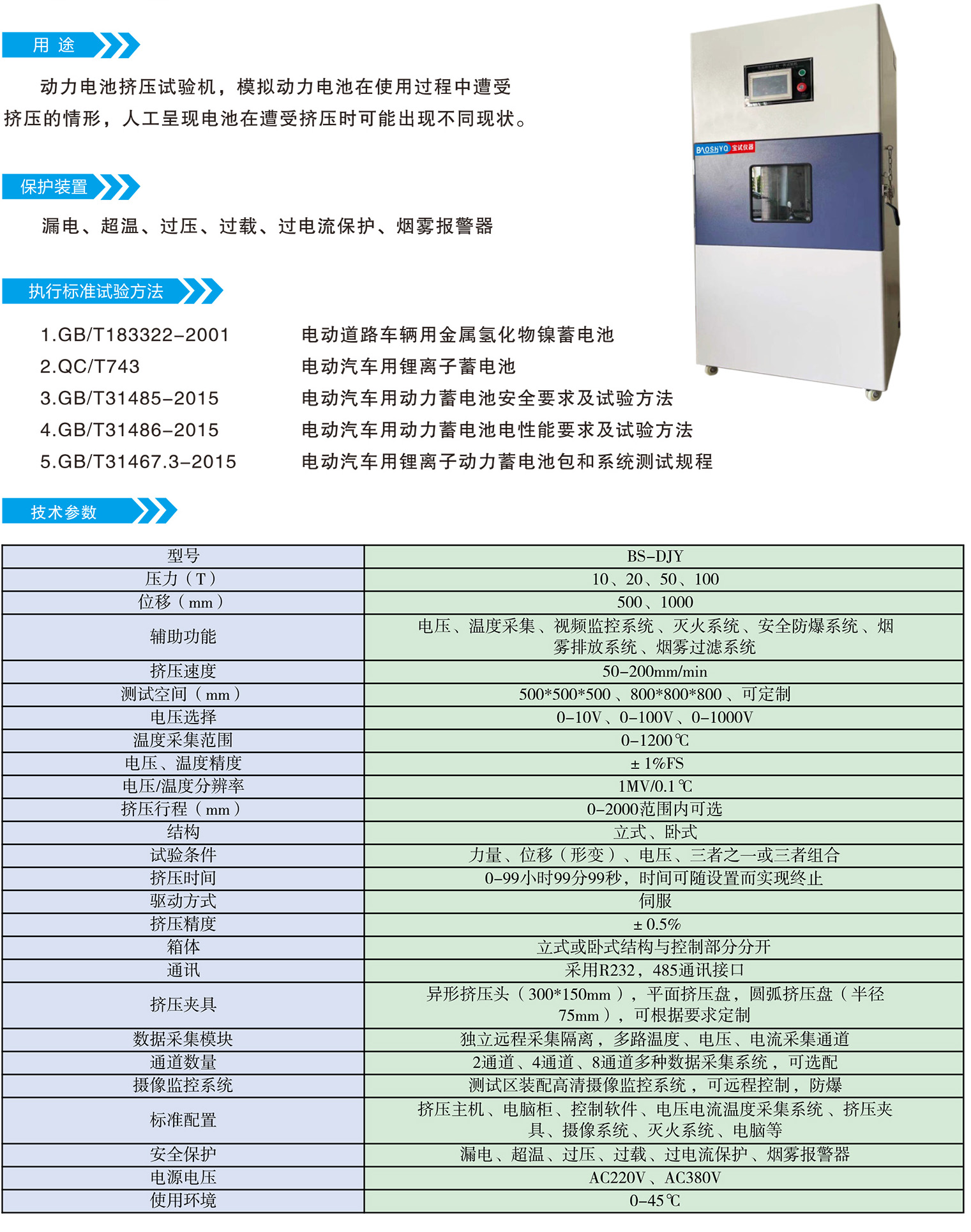 动力电池挤压试验机,模拟动力电池在使用过程中遭受挤压的情形,人工呈现电池在遭受挤压时可能出现不同现状。